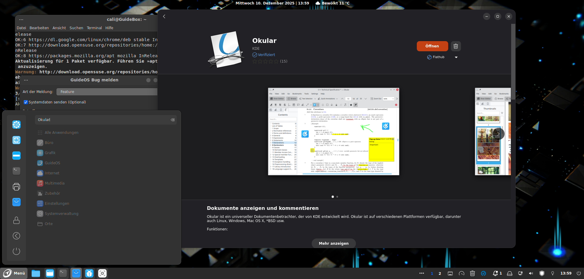 Okular Dokumentenbetrachter als Flatpak installiert, erscheint nicht im Menü (Auch andere Flatpak Software).