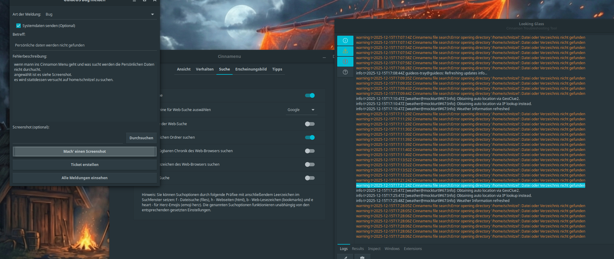 wenn mann ins Cinnamon Menu geht und was sucht werden die Persönlichen Daten nicht durchucht.